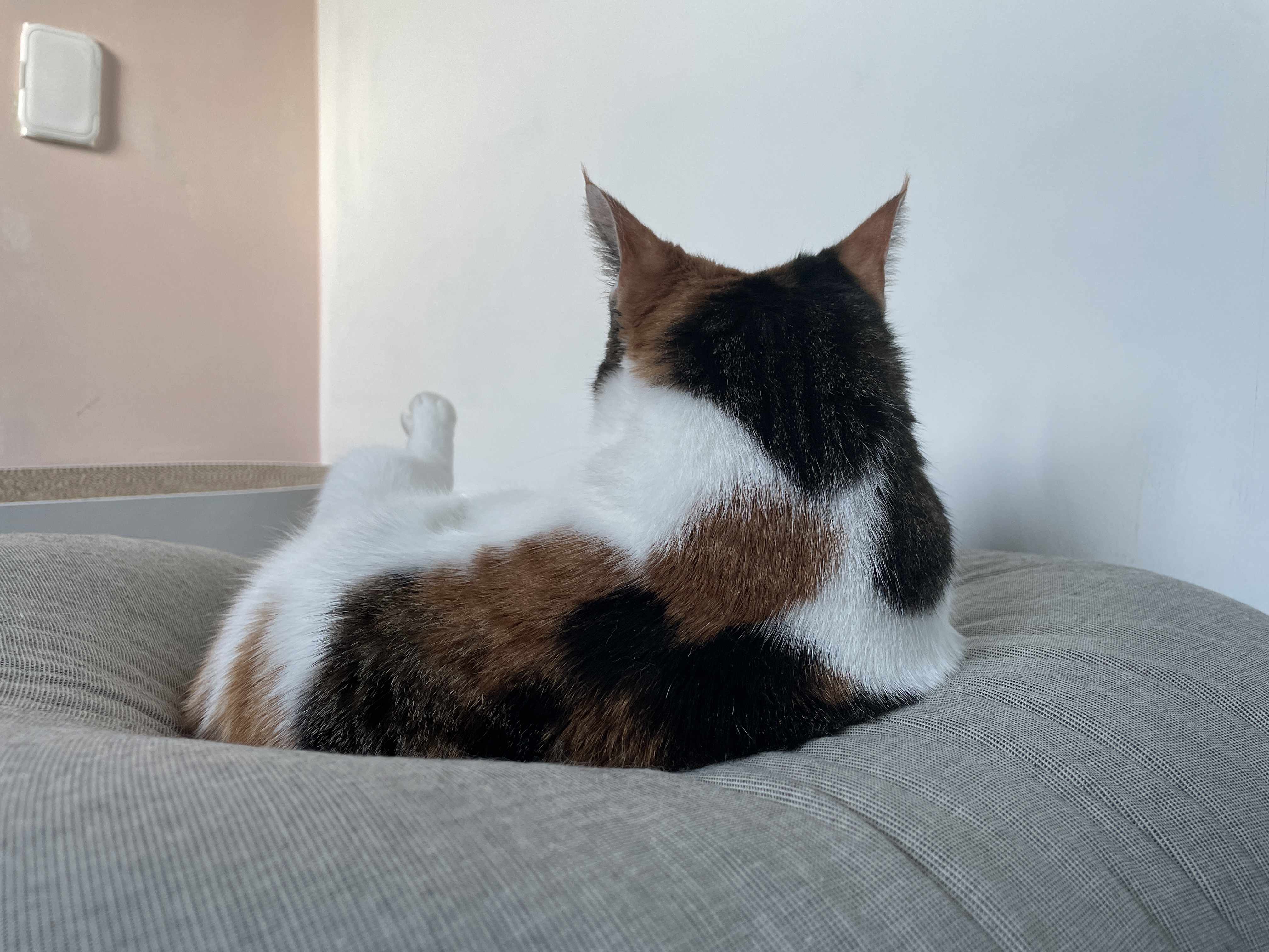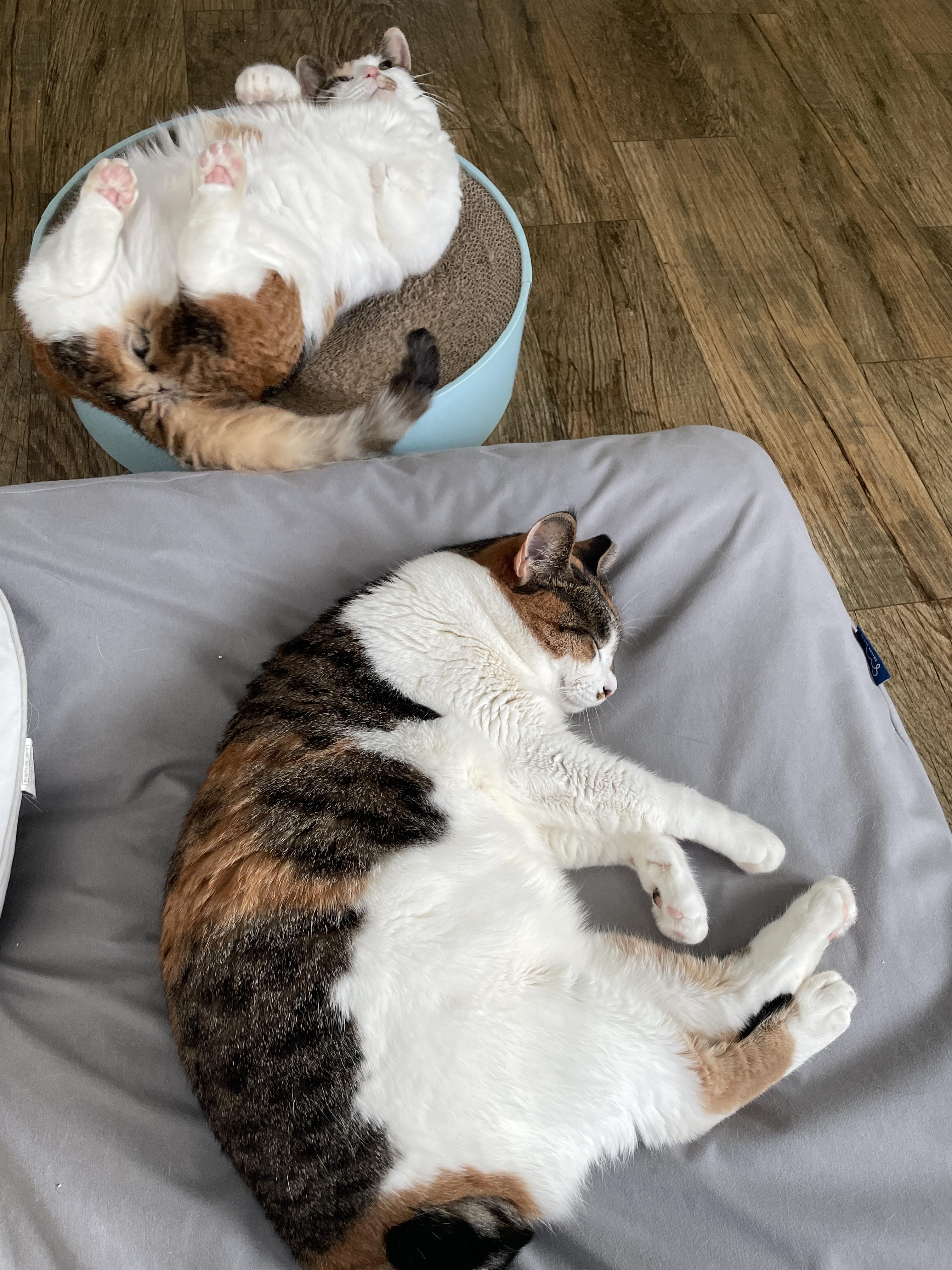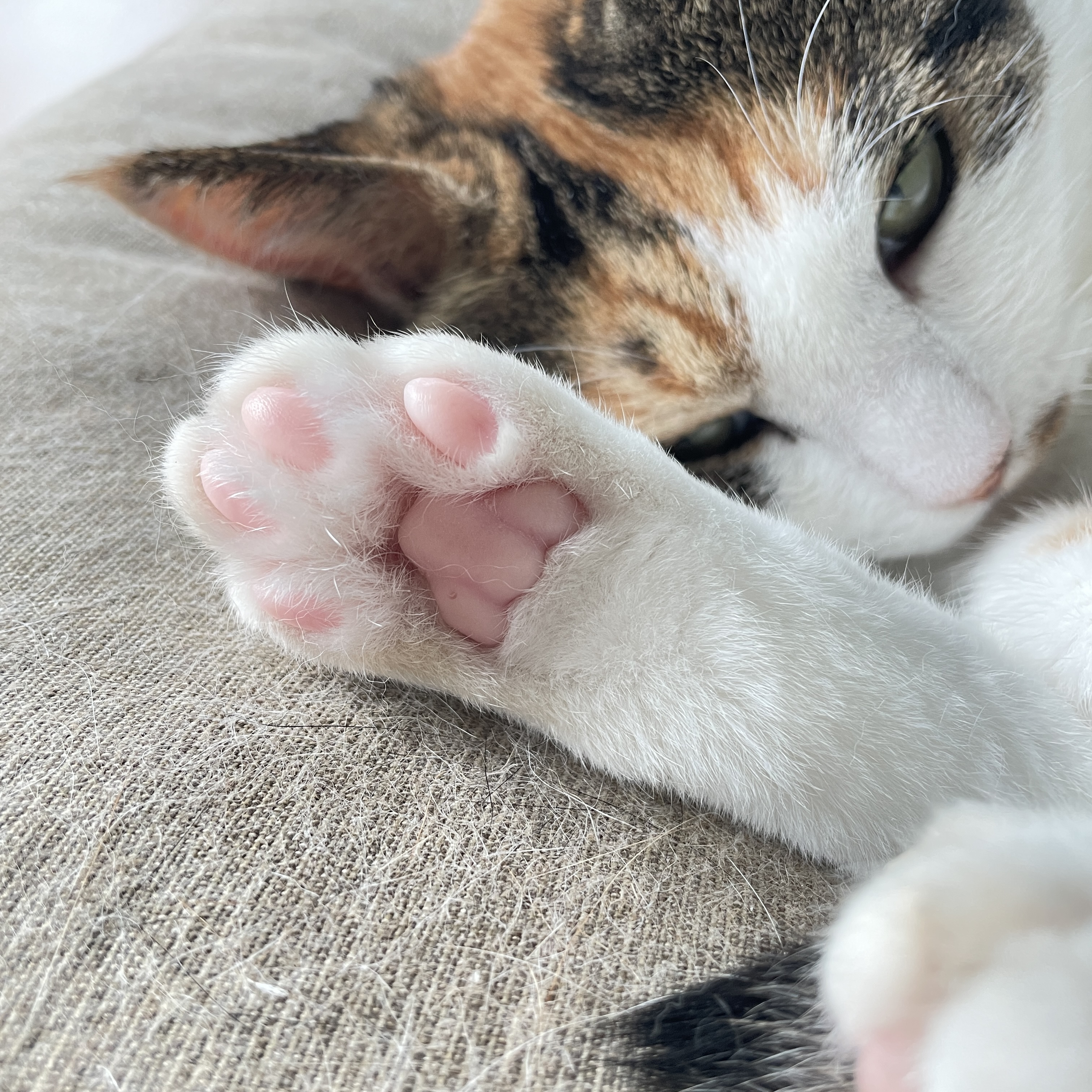 깽이는 제 옆에서 자지만 도도는 옆에는 오고 싶은데 매트에 못 올라오길래 근처에 스크래쳐를 둬봤어요. 근처에 오고 싶었던 건지 제 머리 맡에서 자더라고요. 도도는 다리 3개가 모두 핑크 젤리에요. 말랑말랑 젤리 너무 귀여워요.