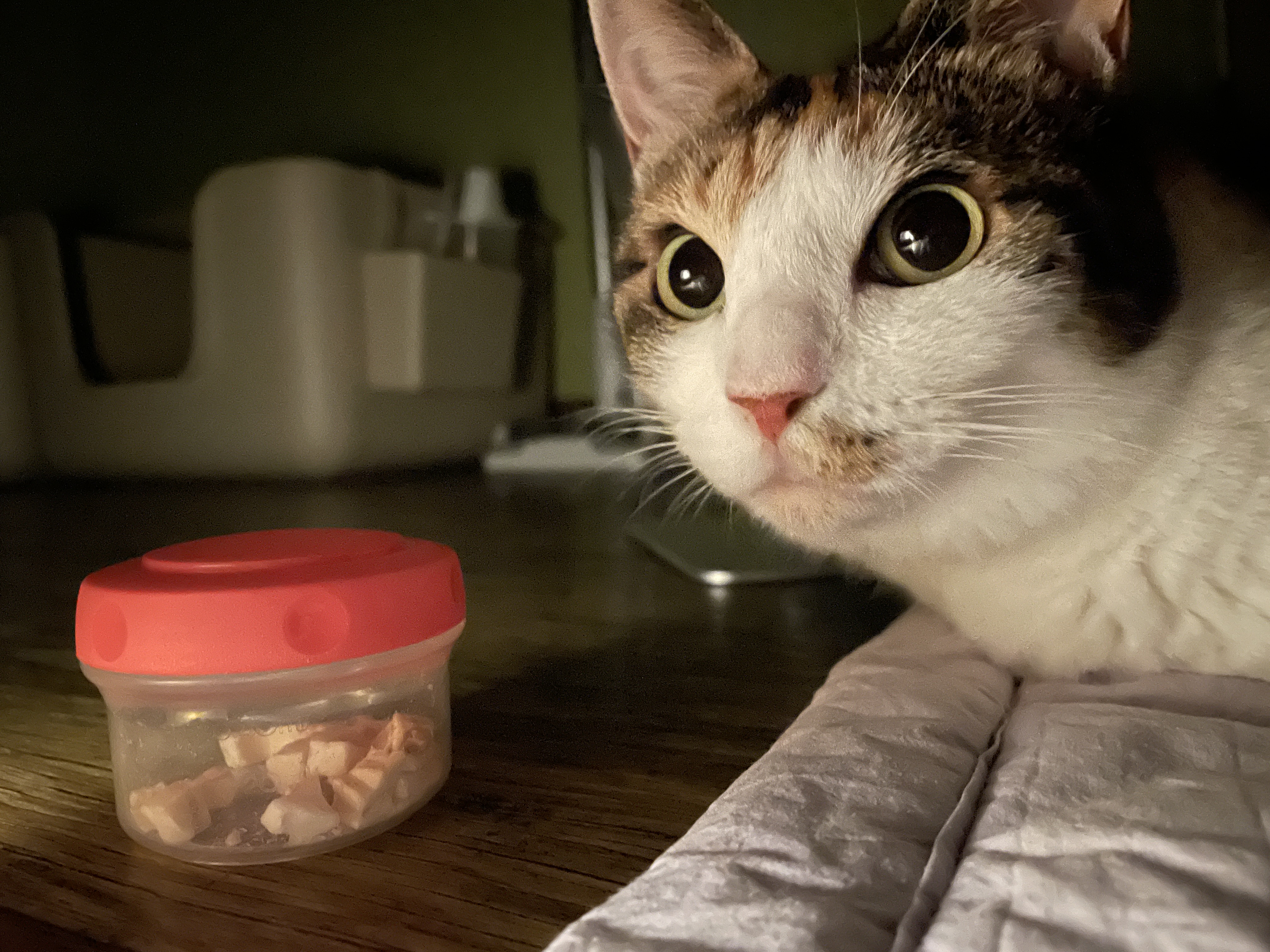 오랜만에 투샷~~ 이건 새벽 5시쯤에 자다 깨서 찍은 사진인데... 밥 달라고 제 근처에 와서 냥냥 거리는 사진이에요. 뒤에 자다 깼는지 얼굴 부어있는 깽이 모습이 보이시나요? ㅎㅎ 아침 7시에 주던 밥을... 애들이 깨우고 깨워서 새벽 4시까지 시간이 빨라졌다가.. 최근엔 집사가 정신차리고 6시에 주고 있어요... 아침밥 잘 챙겨먹는 냥이들 덕분에 집사도 일찍 일어난답니다.