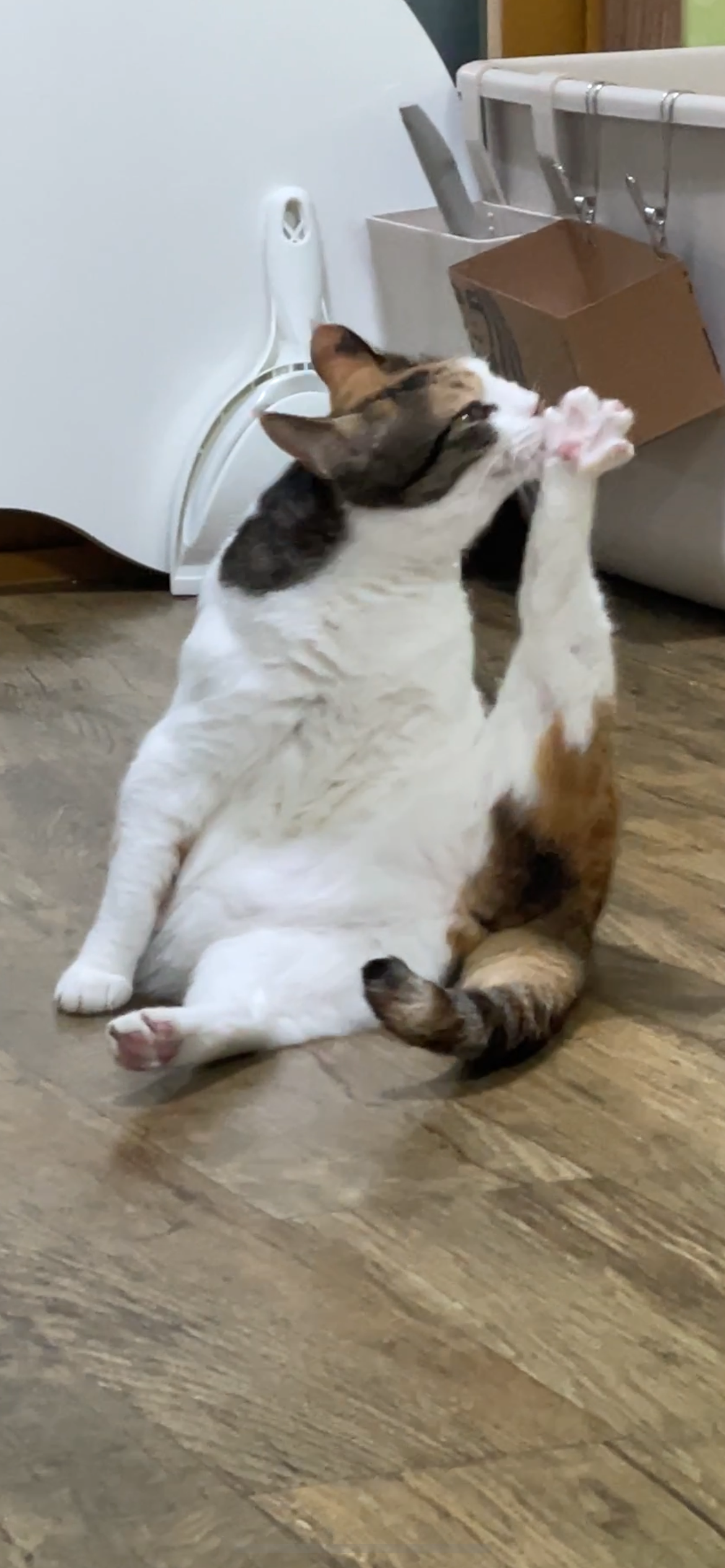 역시 고양이는 유연해요. 가끔 너무 유연하고 흐물거려서 액체 같달까요. ㅎㅎ 요가하는 것 같기도 하고 발 냄새 맡는 것 같기도 하고 눈을 보면 그냥 멍때리는 것 같기도 하고.. 아! 통아저씨 같기도 하네요.